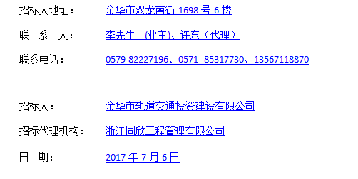 5、潛在投標人對招標文件有疑問的,通過浙江省公共資資源交易中心電子招投標交易平臺提交,提交疑問截止日為2017年7月13日16:30。招標人將于2017年7月20日前在網上發(fā)布補充(答疑、澄清)文件。潛在投標人應自行關注網站公告,招標人不再一一通知。投標人因自身貽誤行為導致投標失敗的,責任自負。